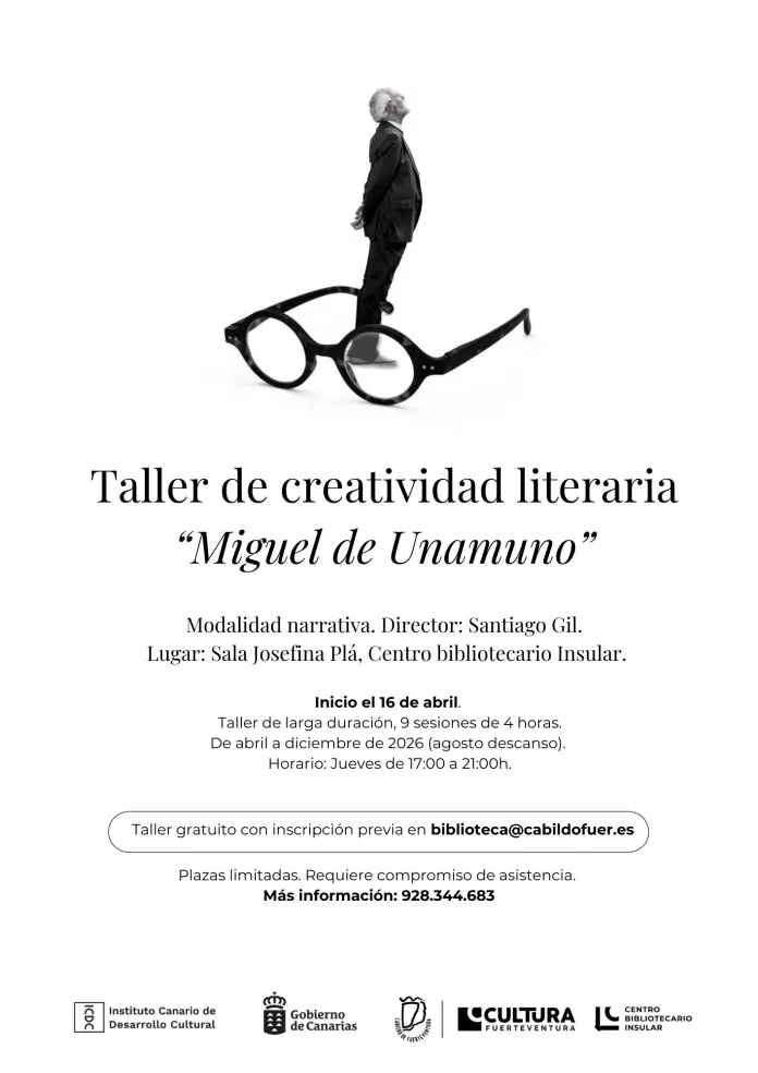 El Centro Bibliotecario Insular ha abierto las inscripciones para participar en el Taller de Creatividad Literaria ‘Miguel de Unamuno’, una formación dirigida a aquellas personas interesadas en adentrarse en la escritura de cuentos, relatos y novela, trabajando tanto la teoría como la práctica. Abiertas las inscripciones para el taller de creatividad literaria ‘Miguel de Unamuno’