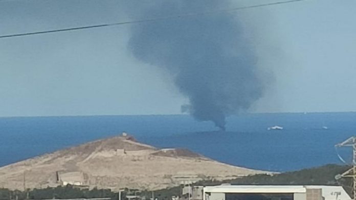 Las autoridades han activado el protocolo de emergencia ante el peligro de vertidos en la costa tras el incendio y posterior hundimiento del barco Montes y Sabino a unos 15 kilómetros del puerto de Taliarte.