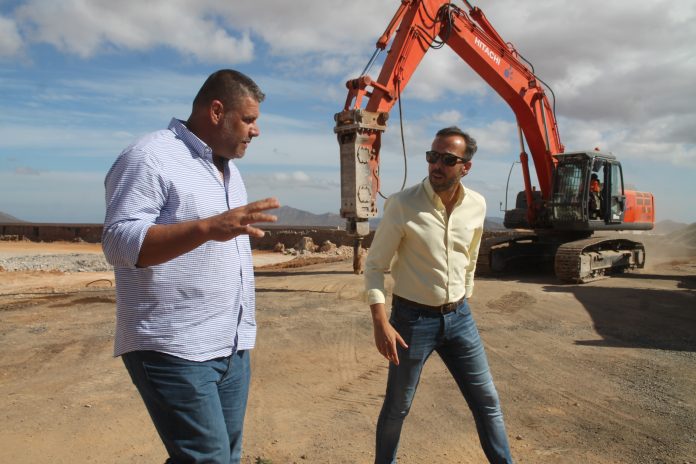 El consejero insular de Deportes, Luis González y el concejal de área en Antigua, Samuel Torres, han visitado las obras que se vienen ejecutando sobre el terreno municipal de más de 20.000 metros cuadrados, y que permitirán dotar al Municipio de un Campo de Fútbol, Pistas e Instalaciones de Atletismo, un amplio graderío en su entorno, además de construir un edificio anexo con aseos, vestuarios, salas polivalentes y almacén. Unas infraestructuras deportivas que sin duda serán referente en el centro de la isla, afirmaba el consejero insular.