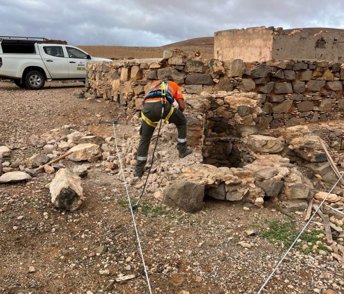 El Cabildo, a través del programa ‘Fuerteventura, bonita por naturaleza’, está desarrollando una importante actuación de recuperación del patrimonio histórico y de seguridad sobre el Caserío de La Florida, en el municipio de Tuineje. Los operarios de las cuadrillas están reconstruyendo con técnicas tradicionales de mampostería y tapiando los pozos abandonados que se encuentran en este espacio. Bajo la supervisión directa de los profesionales del Servicio de Prevención, Extinción de Incendios y Salvamento (SPEIS). Bomberos y cuadrillas colaboran para reconstruir y tapiar los pozos del Caserío de La Florida.