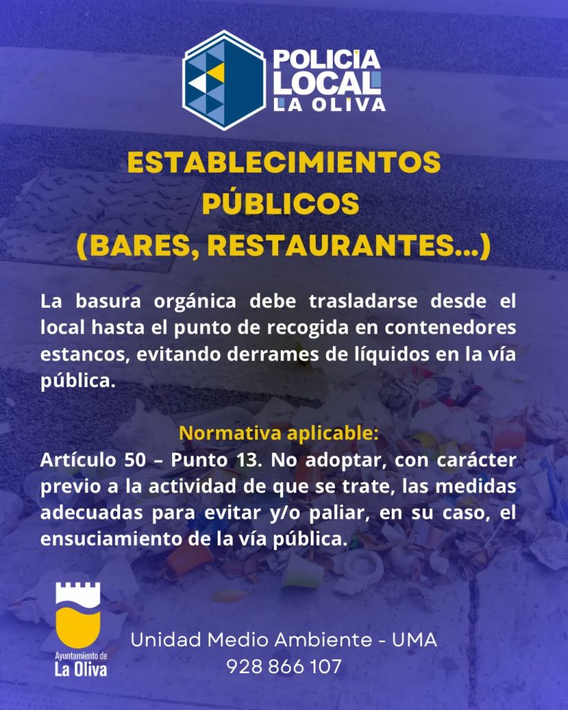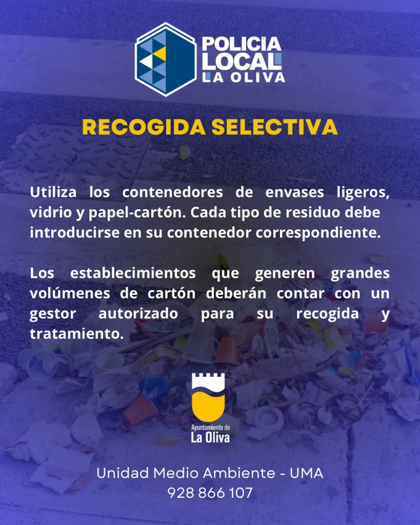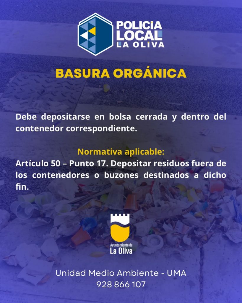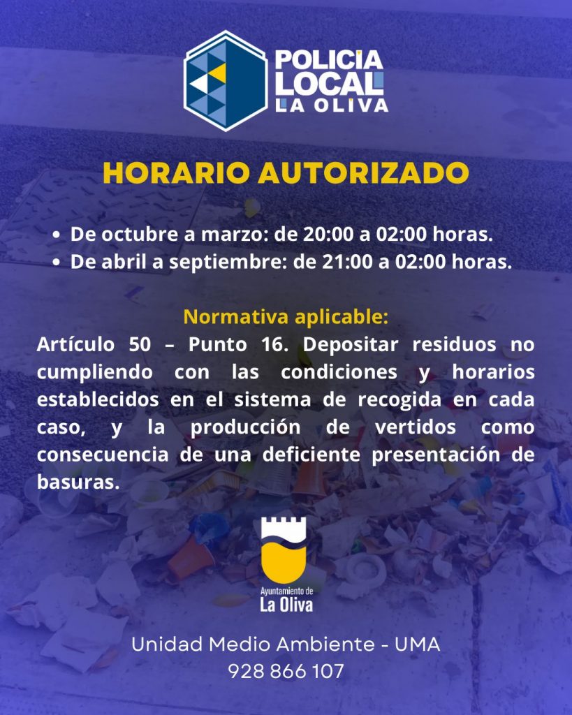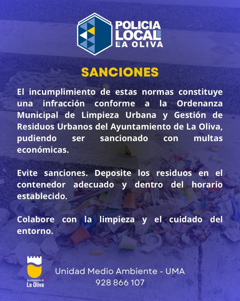 Para más información, póngase en contacto con la Unidad de Medio Ambiente de La Policía Local (UMA) llamando al 928 866 107. Campaña sobre el buen uso de la ordenanza municipal de residuos en La Oliva.