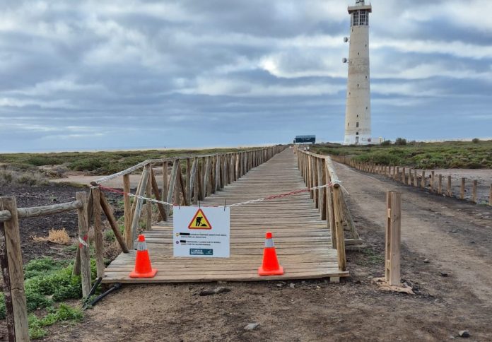 El Cabildo de Fuerteventura, a través de la Consejería de Medio Ambiente, comunica el cierre de la pasarela central que transcurre por el Sitio de Interés Científico Playa del Matorral (próxima al faro). Por motivo de las labores que se ejecutan para su rehabilitación. La pasarela permanecerá cerrada hasta la finalización de los trabajos. Cerrada la pasarela central de Playa del Matorral por labores de mantenimiento