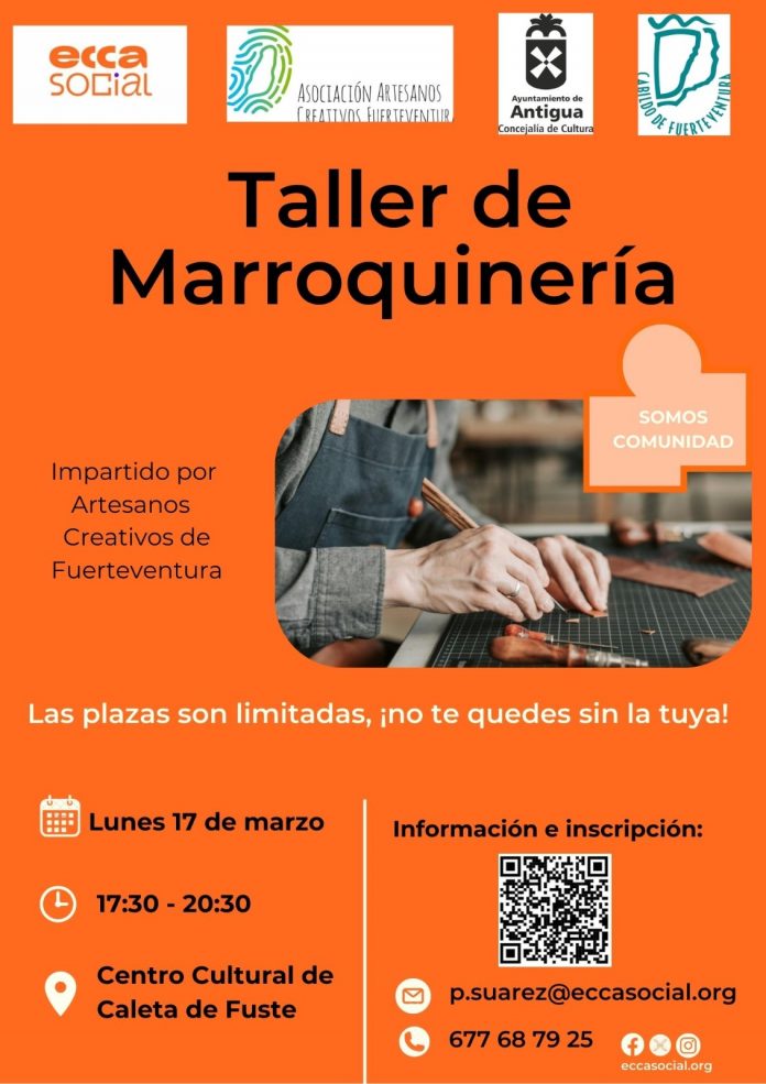 El Taller de Marroquinería es de participación gratuita y plazas limitadas hasta completar aforo. La inscripción en el mismo centro cultural de Caleta de Fuste, llamando al 677687925 o en el email p.suarez@eccasocial.org