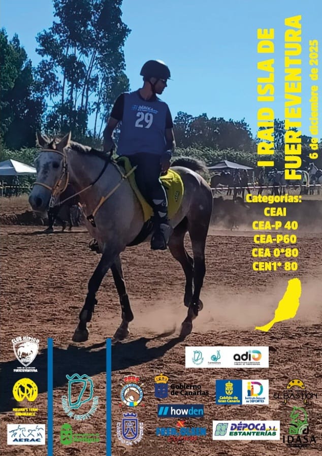El Raid de Fuerteventura – Antigua se presenta como una cita imprescindible para los amantes de la hípica. La prueba reunirá a algunos de los competidores más destacados, quienes demostrarán su destreza en un recorrido exigente, marcado por los contrastes del paisaje majorero. Tanto expertos como aficionados podrán disfrutar de una jornada vibrante, donde el sonido de los cascos, la adrenalina y la técnica ecuestre serán los protagonistas.
