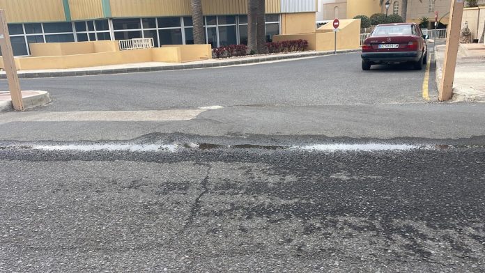 abastece a los abonados de la Avenida Jahn Reisen de la Urbanización de Cañada del Rio, en la Aglomeración Urbana de Costa Calma, dicha rotura ha aflorado en la acera