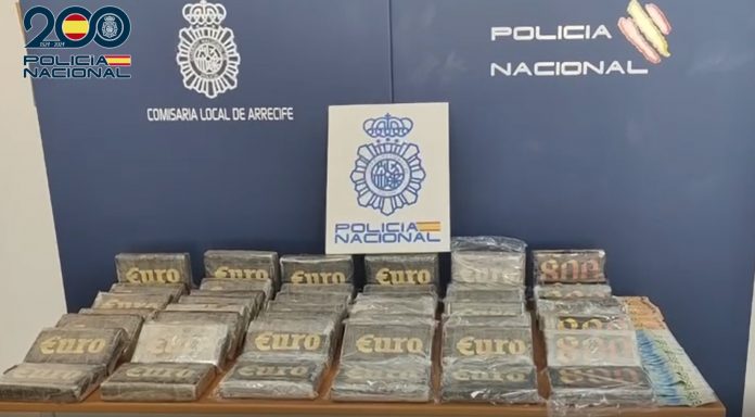 Agentes de la Policía Nacional han detenido en Lanzarote a tres hombres de 44, 47 y 49 años de edad, todos ellos con antecedentes policiales, como presuntos autores de un delito de tráfico de drogas y pertenencia a organización criminal. En la operación se han incautado 55 kilogramos de cocaína cuyo valor en el mercado ilícito supera los 1.600.000 euros. Detenidos en Lanzarote tres miembros de organización criminal
