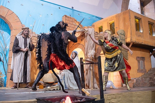 La escenificación representa la lucha entre el ángel y el diablo o el bien y el mal. La Asociación Más Ruines que Caín se encarga cada año de organizar el acto, en coordinación con la Iglesia, recayendo su representación desde hace varios años en las mismas personas.