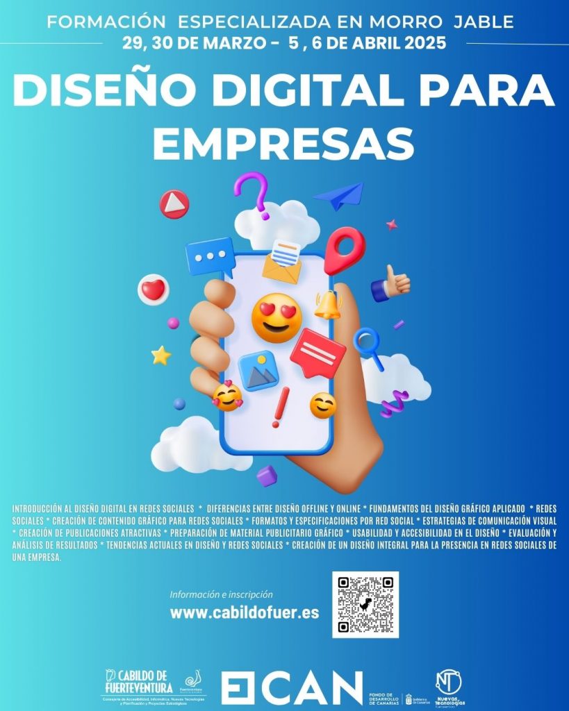 El Cabildo de Fuerteventura abre la inscripción para un curso de diseño digital y redes sociales para empresas