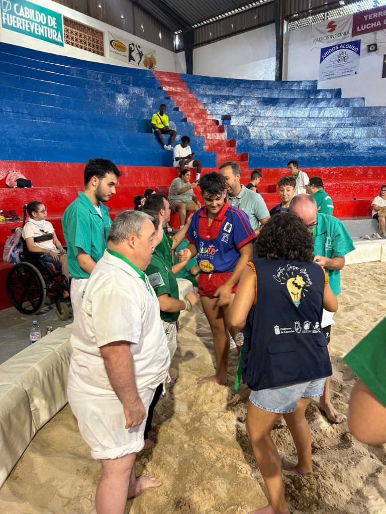 La actividad inclusiva, desarrollada en el terrero de lucha de Puerto del Rosario, ha estado enfocada en acercar el deporte tradicional a la ciudadanía, con especial atención a las personas con diversidad funcional.