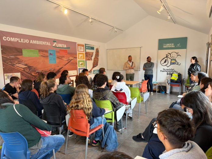 El Cabildo continúa acercando la gestión de los residuos y el reciclaje a los estudiantes de Fuerteventura. En el día de hoy, el Complejo Ambiental de Zurita acogió la visita de un grupo de alumnado y profesorado de intercambio procedente de Alemania que participa en un programa de movilidad Erasmus+ con el IES Puerto del Rosario. El Cabildo sensibiliza a estudiantes de intercambio sobre reciclaje y gestión de residuos