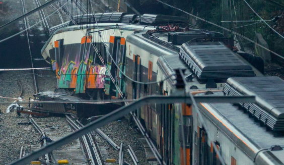 El descarrilamiento de un tren de Rodalies en Barcelona (Gelida) deja un fallecido y 37 heridos. El choque se ha producido después de que el muro se cayera e invadiera la vía de la R4.