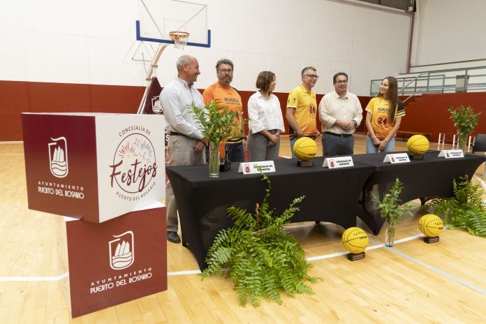 En Puerto del Rosario, a 28 de agosto de 2025.- El Ayuntamiento de Puerto del Rosario presentó este jueves, en el Pabellón Oasis, a los pregoneros de las Fiestas en Honor a Nuestra Señora del Rosario 2025: el Grupo de Recreación Deportiva MERACAS, colectivo organizador del Memorial Ramón Castañeyra Góngora – 24 Horas de Baloncesto, un evento que forma parte de la historia y la identidad de la capital majorera desde hace más de cuatro décadas. El Grupo de Recreación Deportiva MERACAS pregonero de las Fiestas del Rosario 2025