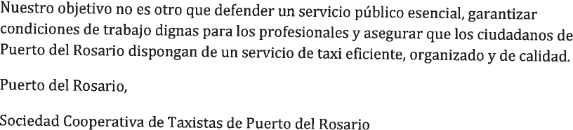 La Sociedad Cooperativa de Taxistas de Puerto del Rosario traslada a través de un comunicado el malestar y preocupación por la situación del sector en el municipio. El sector del taxi en Puerto del Rosario anuncia una huelga indefinida