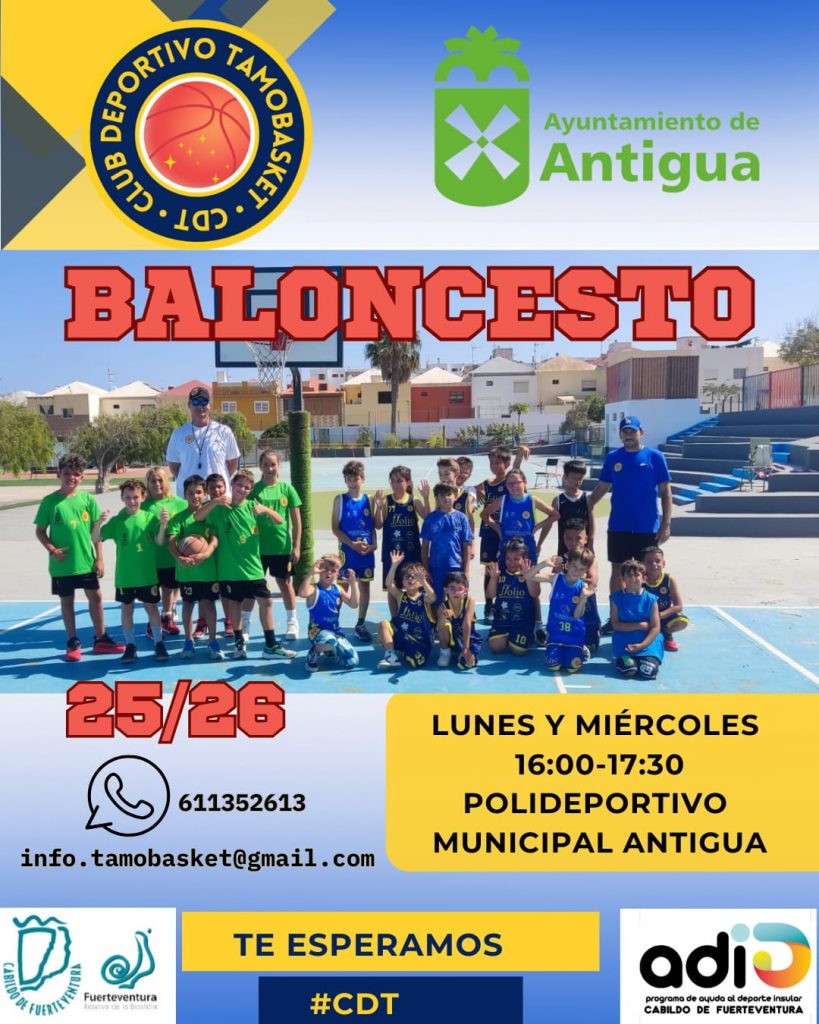 Todos los componentes del Tamobasket animan a jugar al baloncesto y venir a entrenar cada lunes y miércoles de 16:00 a 17:30 horas en la cancha del Polideportivo Municipal de Antigua.