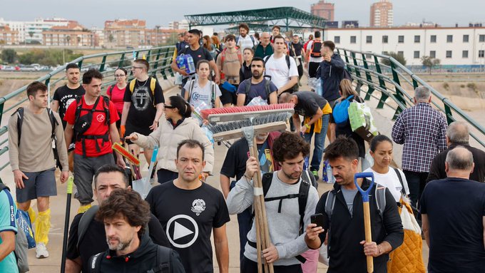 Miles de voluntarios marchan hacia los barrios y pueblos de Valencia más afectados por la DANA, mientras las autoridades llaman a la contención ante el colapso de los accesos. La Generalitat Valenciana hizo un llamamiento para pedir que cesaran los desplazamientos que, aunque son con buena intención y se muestra un «profundo agradecimiento por la ayuda que se está prestando a las poblaciones afectadas», «se están colapsando las vías y los servicios de emergencia no pueden acceder».