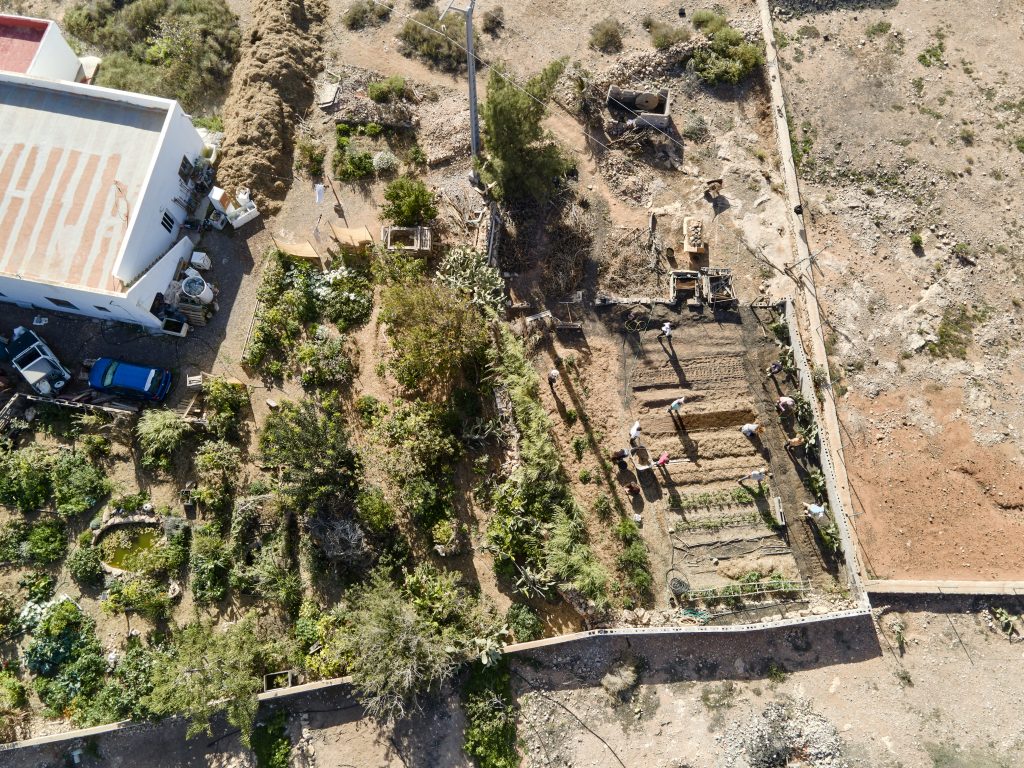Bajo el lema «Pasito a pasito», esta formación se inspira en las tradicionales «pionás» majoreras. Por una costumbre ancestral de la isla basada en el trabajo colectivo. En estas jornadas comunitarias, los vecinos se reunían para ayudarse mutuamente en las tareas del campo. Compartiendo conocimientos y esfuerzo para alcanzar un objetivo común. Por un lado, y siguiendo esta filosofía, el taller fomenta la cooperación y el aprendizaje colaborativo. Permitiendo a los participantes experimentar de primera mano cómo la agroecología puede recuperar la productividad de la tierra a través del esfuerzo conjunto.
