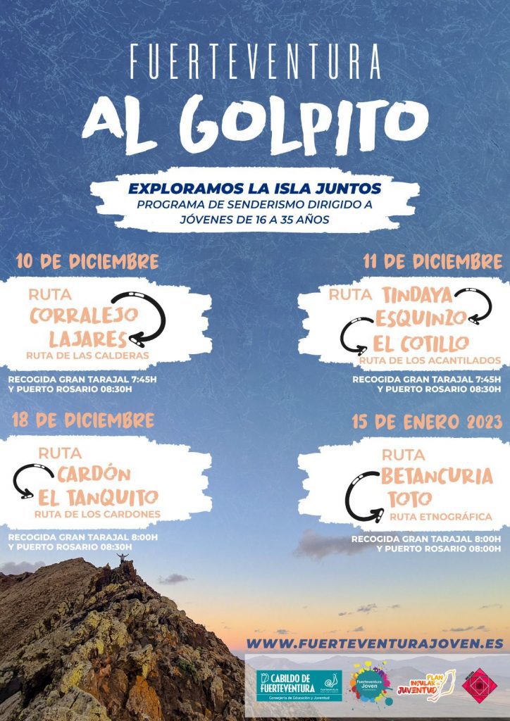 El programa ‘Fuerteventura al Golpito’ de la Consejería de Educación y Juventud del Cabildo de Fuerteventura abre la inscripción a cuatro rutas por la isla dirigidas a jóvenes de entre 16 y 35 años.