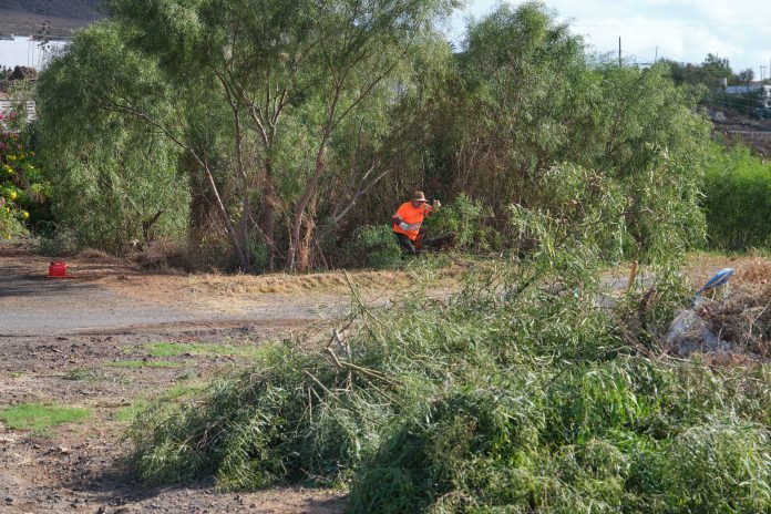 El Cabildo de Fuerteventura está ejecutando actuaciones de limpieza, poda y desbroce en el entorno de la localidad de Tesjuate (Puerto del Rosario), concretamente en la zona del Barranco de Río Cabras, con el objetivo de recuperar y mantener este espacio en las mejores condiciones. ‘Fuerteventura bonita por naturaleza’ realiza labores de poda y limpieza y desbroce en la zona de Tesjuate