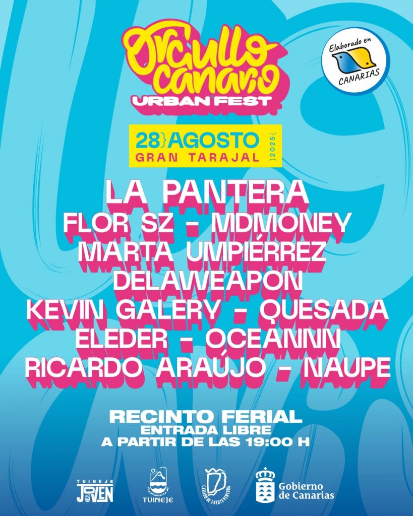 El recinto ferial de Gran Tarajal acogerá el ‘Orgullo Canario Urban Fest’ el próximo 28 de agosto. Dentro de los actos de la Semana de la Juventud 2025, en su 50 edición. Un evento que promete derrochar energía y poner en valor el talento canario, convirtiendo Gran Tarajal en el epicentro de la música urbana. Gran Tarajal se prepara para vivir el ‘Orgullo Canario Urban Fest’