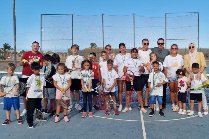 La escuela municipal de Tenis en Caleta de Fuste finalizaba esta temporada esta semana ofreciendo merienda y aperitivos para todos y todas las participantes tras el entrenamiento, así como entrega de medallas para los tenistas. La Escuela de Tenis de Antigua cumple 10 años.