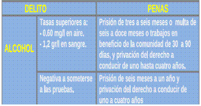 El capítulo IV del vigente Código Penal tipifica los delitos contra la seguridad vial y establece las siguientes penas por la negativa a someterse a las pruebas de alcoholemia: