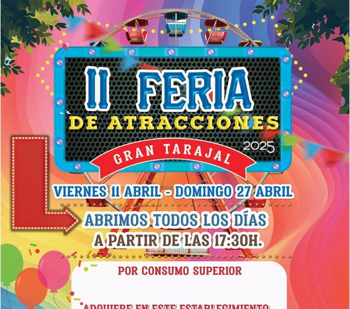 Gran Tarajal acogerá la II Feria de Atracciones entre este viernes 11 y el domingo 27 de abril, con apertura diaria a partir de las 17:30 horas. Entre semana terminará a las 22:30 y festivos y fines de semana a las 00:00 horas. El evento, ubicado en la zona anexa al recinto ferial, incluye atracciones para todas las edades, puestos de comida y actividades de ocio, con el objetivo de ofrecer una alternativa de entretenimiento familiar durante el mes de abril. Se trata de una iniciativa de la concejalía de Comercio que dirige Evelyn Ávila. La II Feria de Atracciones llega a Gran Tarajal del 11 al 27 de abril