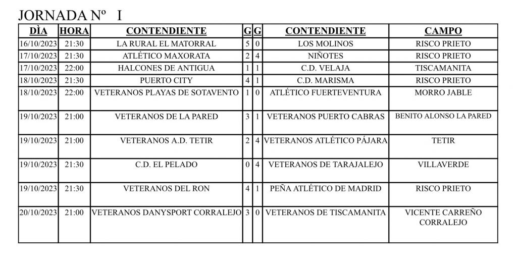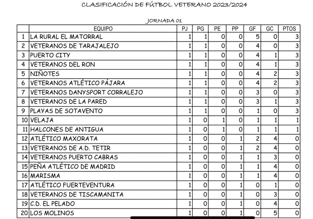 La Liga Veteranos de Fuerteventura ya está en marcha con 20 equipos. Esta es la clasificación, resultados y próxima jornada. Además, trofeo a la deportividad: