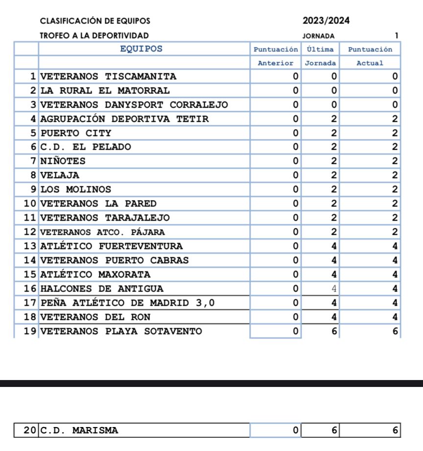 También cuentan por victorias sus partidos Veteranos de Tarajalejo, Puerto City, Veteranos del Ron, Niñotes, Veteranos Atlético Pájara, Veteranos DanySport Corralejo, Veteranos La Pared y Playas de Sotavento.