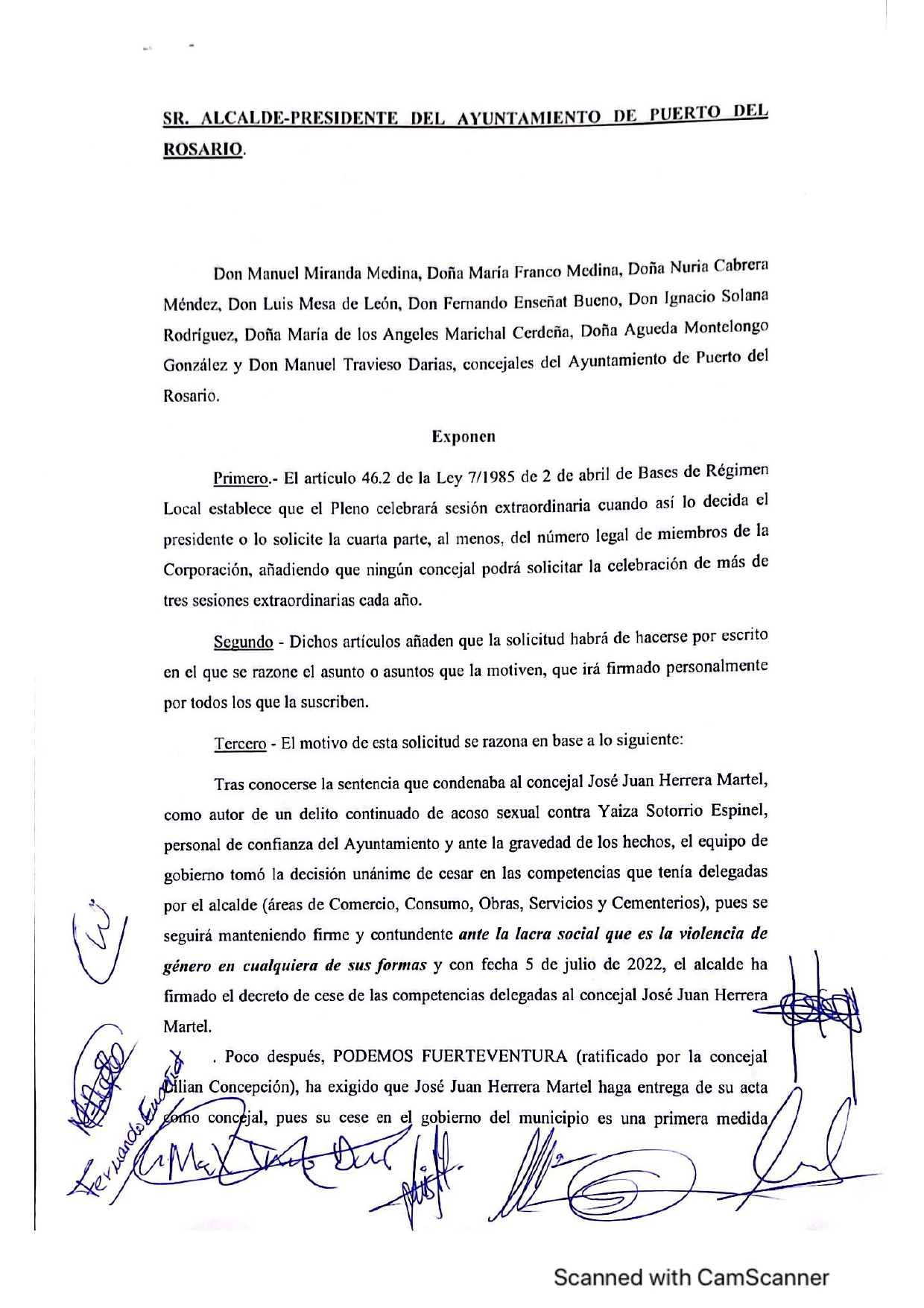 InicioCanariasLa oposición pide a Jiménez un pleno extraordinario para que Yose Herrera... La oposición pide a Jiménez un pleno extraordinario para que Yose Herrera entregue su acta CanariasFUERTEVENTURAPuerto del RosarioNoticiasPoliticaPortadaSociedad Publicada el julio 12, 2022 Por Onda Fuerteventura FacebookTwitterPinterestWhatsAppLinkedinReddIt 418 Ultimas Noticias Canarias Empleo visita dos proyectos de inserción laboral en los que colabora con FEMETE La consejera de Turismo y Empleo del Gobierno de Canarias, Jéssica de León, y... octubre 15, 2025 CABILDO El Cabildo recibe a los trabajadores y trabajadoras del programa NOE 2025 El Cabildo de Fuerteventura recibía a las personas desempleadas que se incorporan a la... octubre 15, 2025 Sin Categoría Canarias reclama a la UE un apoyo financiero específico para el sector pesquero El consejero de Agricultura, Ganadería, Pesca y Soberanía Alimentaria del Gobierno de Canarias, Narvay... octubre 15, 2025 Agua Consejo Insular de Aguas avala la prórroga de emergencia hídrica de Lanzarote y La Graciosa hasta febrero del 2026 La Asamblea General del Consejo Insular de Aguas de Lanzarote ratificó esta mañana, por... octubre 15, 2025 Noticias del día Canarias Empleo visita dos proyectos de inserción laboral en los que colabora con FEMETE La consejera de Turismo y Empleo del Gobierno de Canarias, Jéssica de León, y... octubre 15, 2025 CABILDO El Cabildo recibe a los trabajadores y trabajadoras del programa NOE 2025 El Cabildo de Fuerteventura recibía a las personas desempleadas que se incorporan a la... octubre 15, 2025 Sin Categoría Canarias reclama a la UE un apoyo financiero específico para el sector pesquero El consejero de Agricultura, Ganadería, Pesca y Soberanía Alimentaria del Gobierno de Canarias, Narvay... octubre 15, 2025