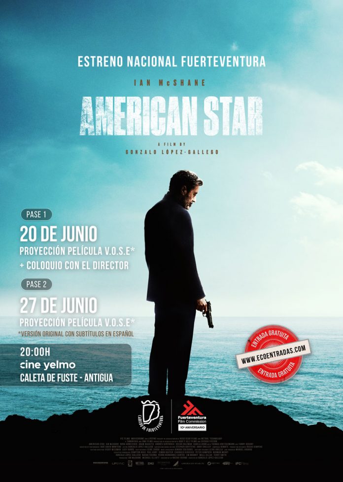 Fuerteventura acogerá el estreno nacional de la película American Star, el próximo jueves, 20 de junio, a las 20.00 horas, en Yelmo Cineplex (Caleta de Fuste) en versión original subtitulada en español. Tras finalizar la proyección del largometraje, rodado íntegramente en Fuerteventura, tendrá lugar un coloquio con el director del film, Gonzálo López-Gallego. La película ‘American Star’ se estrena el próximo 20 de junio en Fuerteventura.