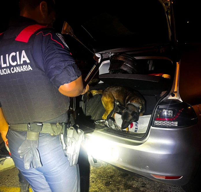 El vehículo disponía de un mecanismo de ocultación activado mediante un interruptor cableado, que permitía acceder a un compartimento secreto situado bajo el asiento del copiloto. La localización de dicho compartimento fue posible gracias a la intervención de los perros del Grupo de Guías Caninos de la Policía Canaria, cuya actuación resultó determinante para el éxito de la operación.