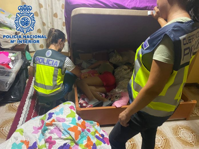 Allí, oculta bajo el arcón que daba soporte al colchón, fue localizada la menor 15 de años desparecida, en buen estado de salud. Una vez comprobado que se encontraba perfectamente, fue trasladada hasta la sede de la Jefatura Superior de Policía de Canarias, donde fue entregada a su padre biológico.
