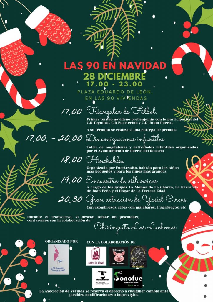 En la Plaza Eduardo de León se sucederán actos deportivos, sociales y culturales. La Asociación de Vecinos de las 90 viviendas organiza una completa programación para el 28 de diciembre que, además, tiene la colaboración del Los Lechones para disfrutar de buena comida y bebida.