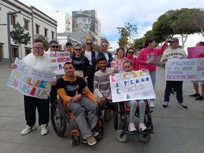 La inclusión «es un derecho de las personas con discapacidad», como recuerda Naciones Unidas, «deben acudir a un aula ordinaria, no a un centro especial», pero la «falta de recursos humanos y materiales» hace que «la inclusión no sea real» en los centros educativos de Canarias. Es la queja de las familias de alumnado con Necesidades Específicas de Apoyo Educativo (NEAE) o Necesidades Educativas Especiales (NEE) en el archipiélago. «Pedimos el cumplimiento de los derechos de nuestros hijos e hijas, no queremos privilegios», señalaban en la concentración que ha tenido lugar hoy en Puerto del Rosario.