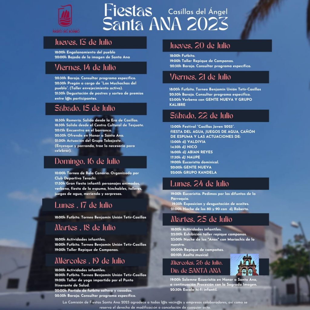 El pregón de las fiestas de Santa Ana en Casillas del Ángel, que se celebran del 13 al 26 de julio, correrá a cargo este año del colectivo de personas mayores de la localidad, según ha anunciado hoy el Comité de Festejos en ‘El Magacín de Onda Fuerteventura’ tras ser confirmada la decisión por parte de las nueve protagonistas que integran el grupo de «Mente Activa», una de las actividades semanales que cuenta con mayor convocatoria debido a que además de impulsar actividades fomenta puntos de encuentro con otras vecinas. “Queremos hacer un reconocimiento al esfuerzo de toda una vida, que es lo que representan nuestras vecinas”, ha señalado Samuel Perdomo, colaborador habitual de Onda Fuerteventura, nacido en Casillas del Ángel y representante del Comité de Festejos.