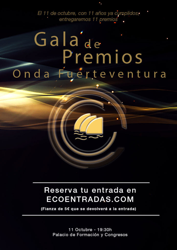 La dirección de Onda Fuerteventura ha anunciado que la XI ceremonia de Premios ONDA FUERTEVENTURA tendrá lugar el sábado 11 de octubre en el Palacio de Formación y Congresos de Fuerteventura (Puerto del Rosario) en una ceremonia que tendrá lugar a las 19:30h. y para la que se ruega etiqueta a todos los asistentes.