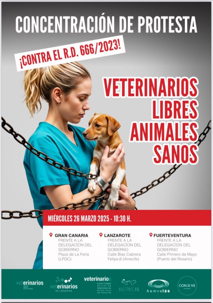 Paralelamente, de 10:30 a 11:30, los veterinarios se concentrarán ante la Delegación del Gobierno en Las Palmas de Gran Canaria y en las subdelegaciones de Arrecife de Lanzarote y Puerto del Rosario (Fuerteventura) para exteriorizar su protesta.