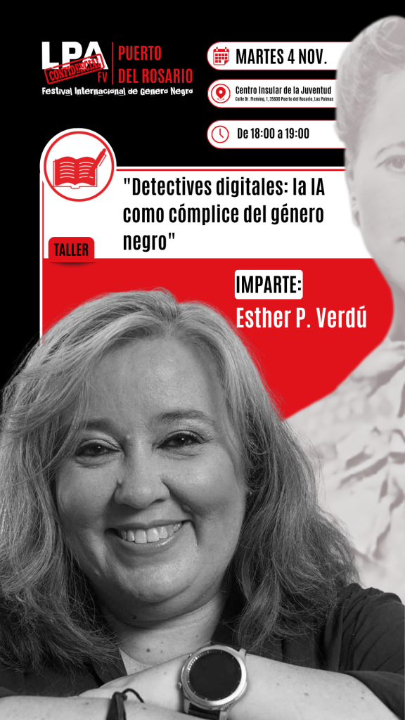 La jornada dará comienzo a las 18:00 horas con una actividad de lo más actual. El taller «Detectives Digitales: la IA como cómplice del género negro», impartido por Esther Pérez Verdú. En un festival ambientado en el espionaje, la tecnología se convierte en una herramienta fundamental para la intriga moderna. Este taller propone una inmersión para descubrir cómo la inteligencia artificial puede ser utilizada por escritores y aficionados. Todo ello para crear atmósferas intrincadas, diseñar personajes inolvidables y superar bloqueos creativos, ofreciendo una introducción amigable a la IA sin tecnicismos.