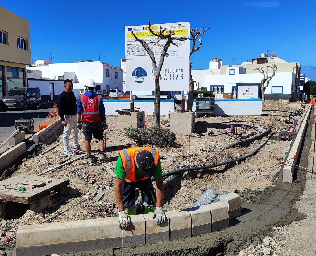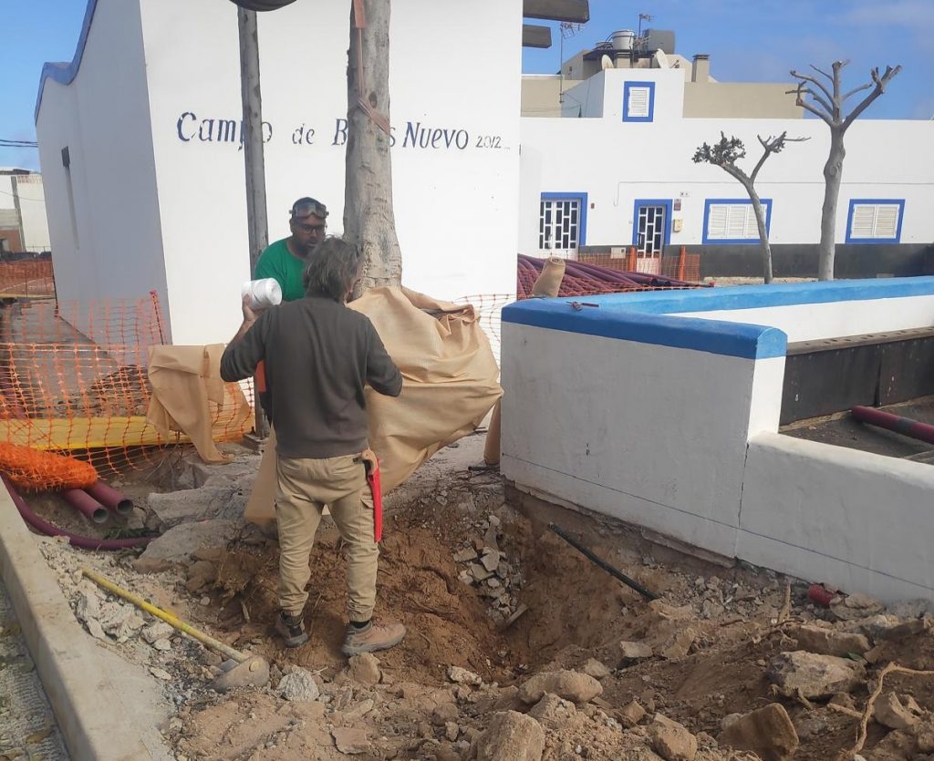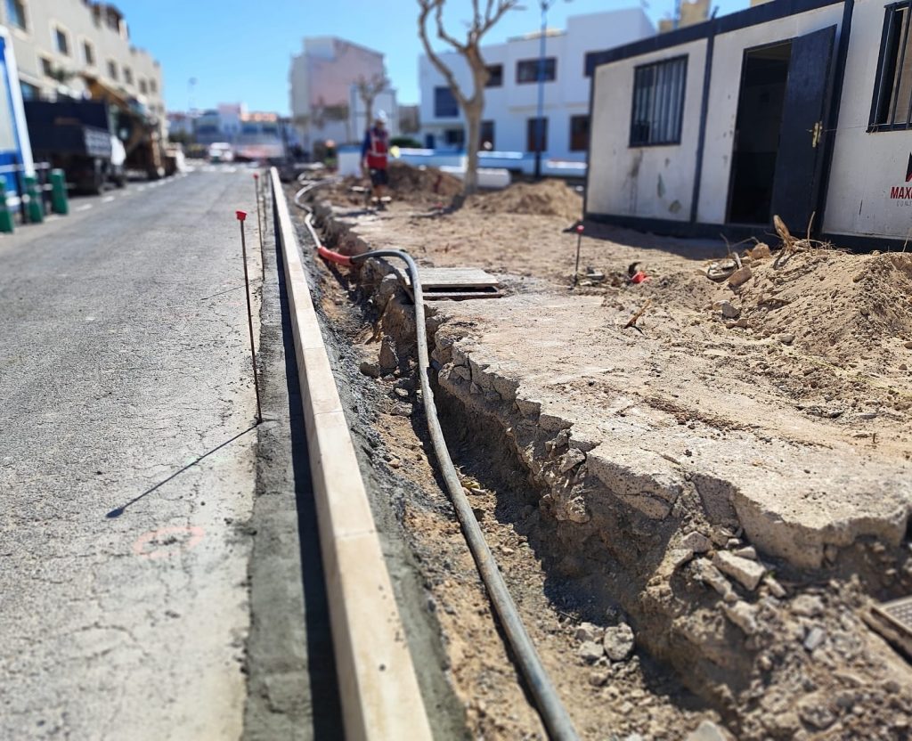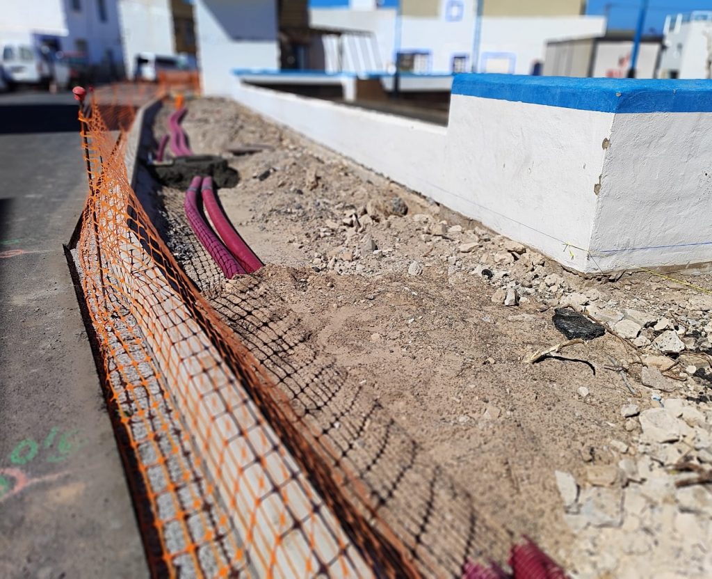 El Ayuntamiento de La Oliva finaliza la demolición y replanteo de la primera parte de las obras de nuevas aceras accesibles en la Avenida Los Lagos en El Cotillo.