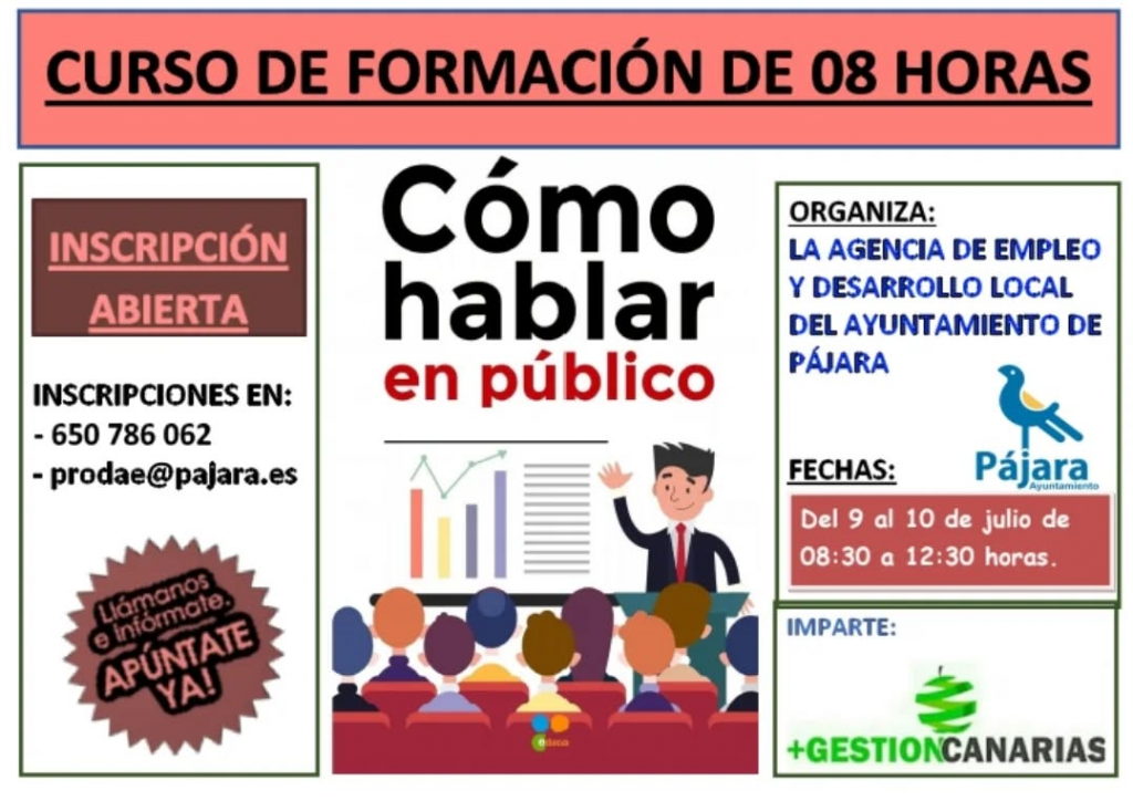 Las inscripciones para estas actividades formativas ya están abiertas en la Oficina de Desarrollo Local del Ayuntamiento de Pájara. Esta iniciativa busca responder a las demandas del mercado laboral actual y, al mismo tiempo, brindar oportunidades de crecimiento personal a todos los vecinos y vecinas del municipio.