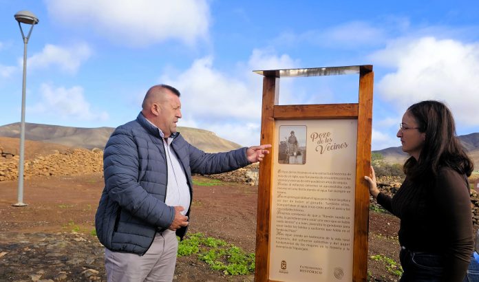 El alcalde, Matías Peña García y la concejala de Patrimonio Histórico, Sandra Torres Soto, han comprobado este lunes 22 de diciembre por la mañana, la instalación de un panel informativo, que señaliza el Pozo de Los Vecinos, como infraestructura de interés patrimonial con un texto aportado por la asociación vecinal Triquivijateando sobre la historia del uso y actividad del mismo. Patrimonio Histórico de Antigua señaliza el Pozo de los Vecinos en Triquivijate