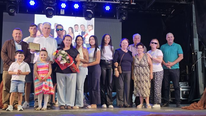 El público familiar y cercano, bajo el refugio de la carpa, acompañó con aplausos y exclamaciones confirmando o aportando a los hechos preguntados por el querido presentador Jose Francisco Montesdeoca, y a su vez, respondidos y relatados por Jacinto, que junto a su mujer, recibió una placa de recuerdo, de manos del alcalde, Matías Peña García y el concejal de Festejos, Pedro M. Armas Martín.