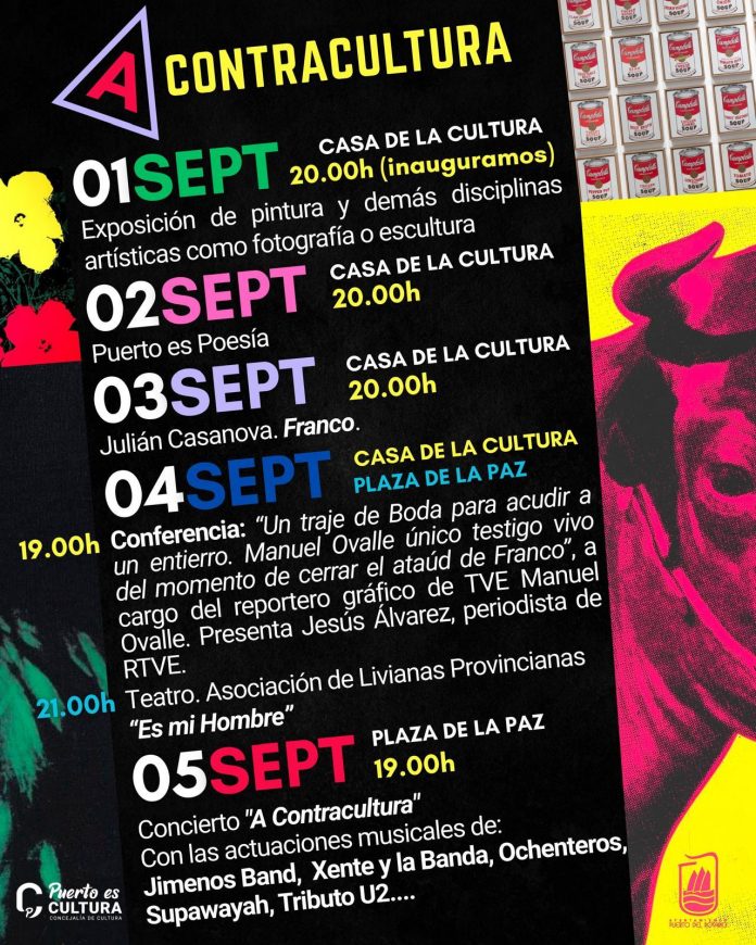 El Ayuntamiento de Puerto del Rosario presenta la programación de la semana ‘A contracultura’, que convertirá a la capital majorera en epicentro de la cultura, la reflexión y el entretenimiento con actividades para todos los públicos desde el 1 al 5 de septiembre. Puerto del Rosario se prepara para una semana de cultura y arte con la semana ‘A contracultura’