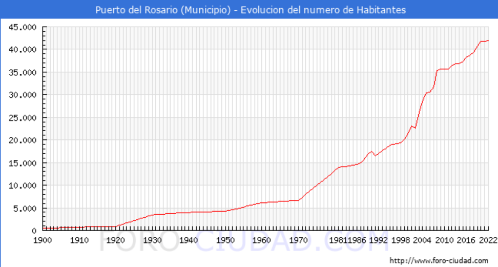 Puerto del Rosario supera los 45.000 habitantes. Puerto del Rosario sigue creciendo en número de habitantes. La capital de Fuerteventura ha superado este 2023, por primera vez en su historia, los 45.000 habitantes censados en el municipio, según datos estadísticos del Padrón municipal, y confirmando el continuo crecimiento de la capital de la isla.