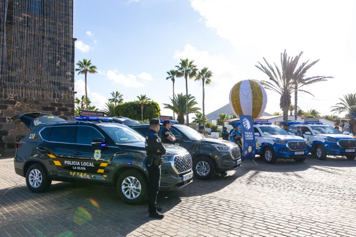 Continúa la mejora de la seguridad en el municipio de La Oliva. El Ayuntamiento, a través de la Concejalía de Seguridad Ciudadana, con el propio alcalde al frente, Isaí Blanco, presenta cuatro nuevos coches y 3 nuevas motos destinadas a las labores diarias de la Policía Local. Una actuación que refuerza el compromiso del Consistorio con Seguridad y Emergencias y que, supone un paso más, en la mejora integral de la protección de locales y visitantes.