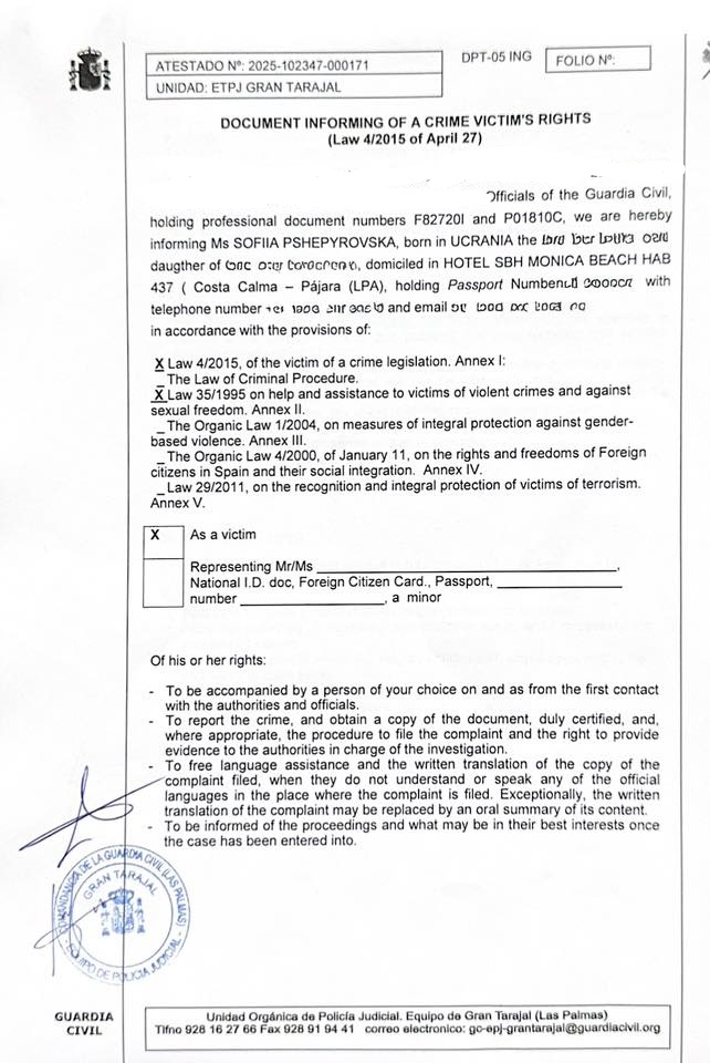 La víctima relata que había llegado al hotel solo cinco horas antes de que sucedieran estos hechos. «No bebí, no hablé con nadie, y simplemente estaba descansando en mi habitación. Había dejado la puerta del balcón ligeramente abierta porque hacía calor y sofocado. La policía está investigando actualmente». Tras denunciar los hechos en la Comandancia de la Guardia Civil, la mujer fue ingresada en el Hospita donde ha recibido atención médica.
